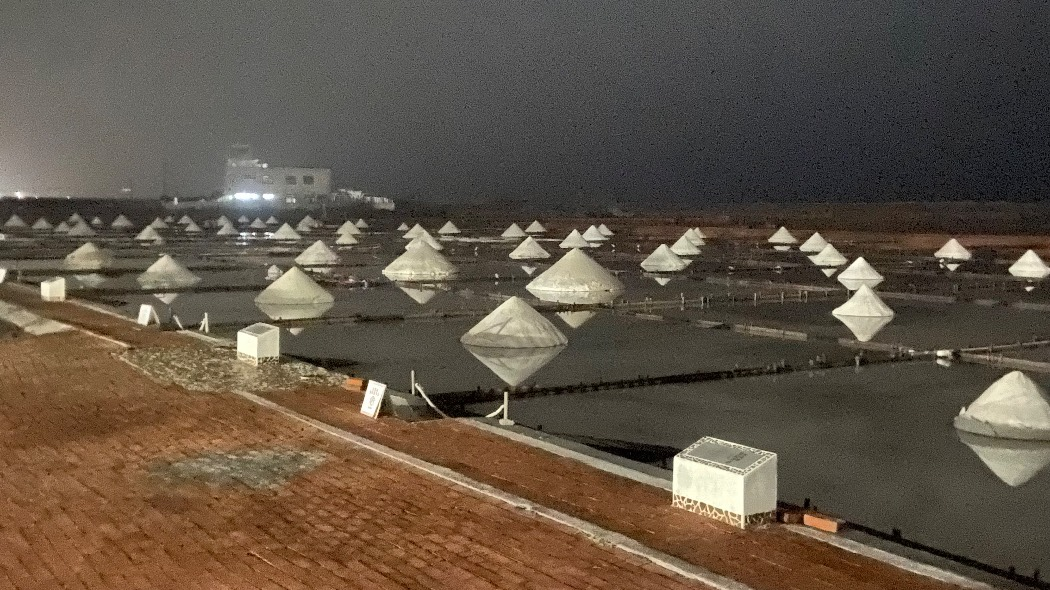 海風鹽田與夕陽